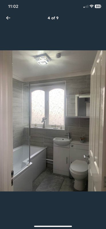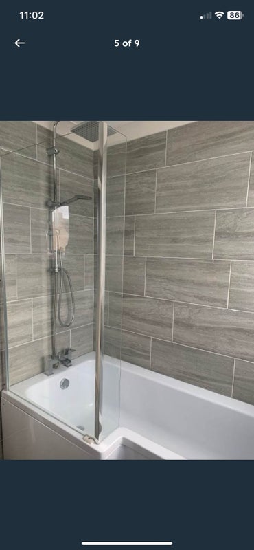 Newly fitted bathroom with bath and double shower.