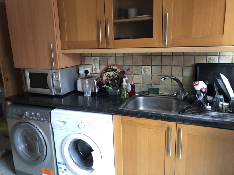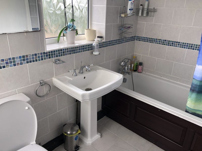 There is also a kitchen with washing machine, 2 bathrooms, a lovely sun room, a living room & garden with shed for bikes. There is also space for 2 cars on the forecourt + parking space on the street in front of the house. We currently have fibre optic broadband.