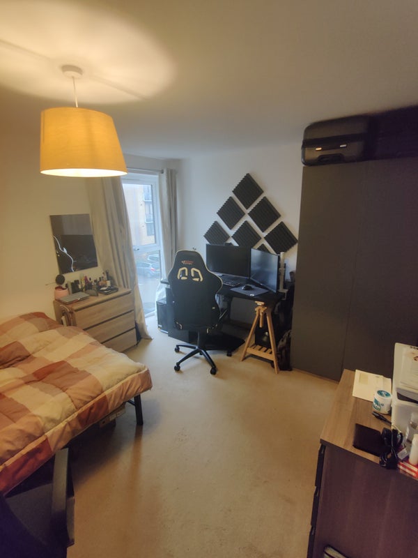The double bedroom (4.11m X 3.25m) that you’ll rent includes a wardrobe and a bed with mattress.
