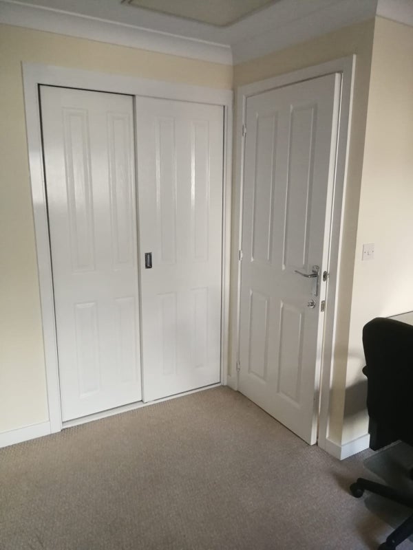 The room is a large en-suite double with a double bed, chest of drawers, a workstation and chair and ample wardrobe space, it has 2 sliding wardrobes.