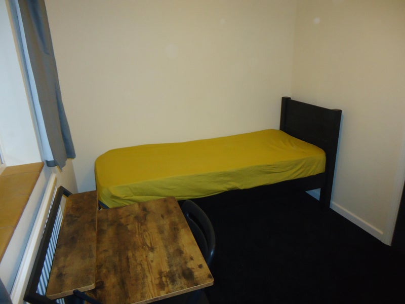 Centrally heated Room includes single bed+mattress, wardrobe, desk+chair and chest of drawers.