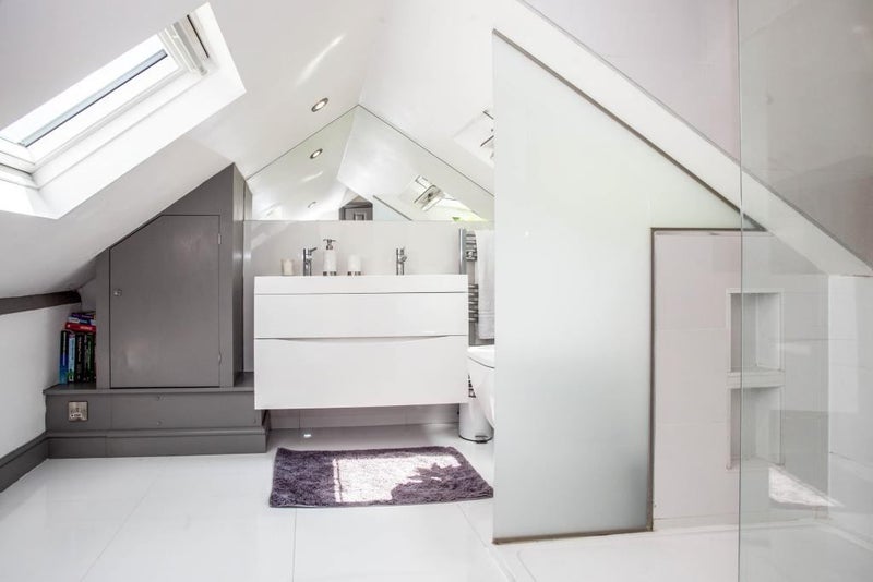 Self-contained ground floor garden studio (£875 per month) with private entrance, kitchenette and en-suite bathroom.