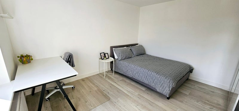 We have a brand new furnished room with double bed and mattress, wardrobe, drawers, desk and chair.