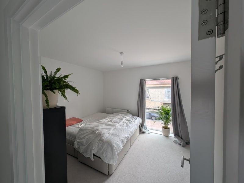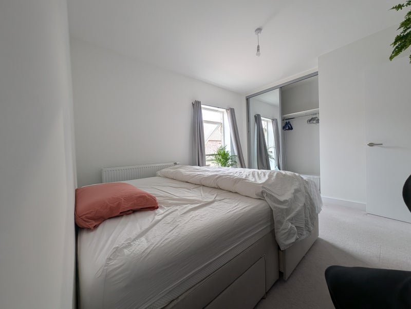 The room is fully furnished with a super king-sized bed and a spacious built-in wardrobe. The house has two toilets, a large kitchen with a dishwasher and washing machine, an open-plan living area, a cosy garden with a shed, and a private parking space that you are welcome to use.