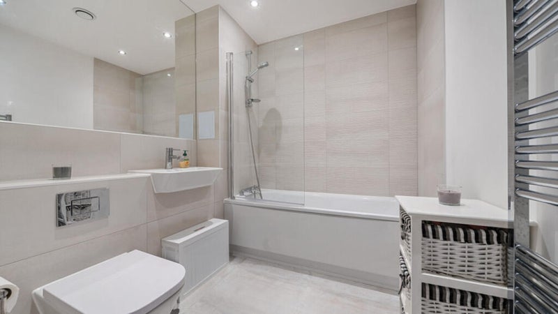 There is a bathroom upstairs that will be shared when I am home and a downstairs toilet. There is a large living room with a ridiculously oversized sofa and large TV perfect for quiet nights in (it is hard to resist). A good sized kitchen diner downstairs and utility cupboard with washer dryer.
