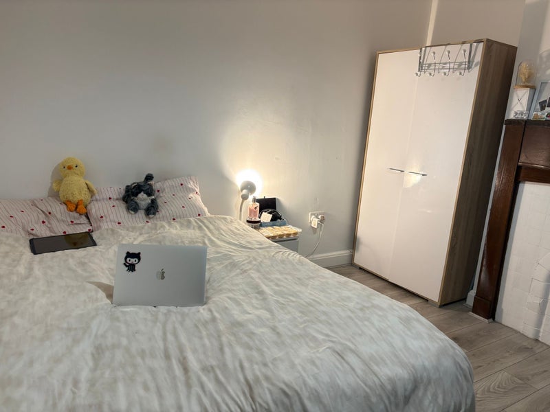 A comfy double room that fits a bed and your life without feeling cramped. Perfect for working, relaxing, or pretending to work while relaxing.