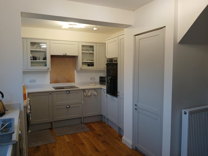 The use of the kitchen and dining area is shared. The shared appliances in the kitchen are the stove, the ovens, kettle, microwave, toaster. 1 shelf of the main fridge, 1 shelf of the freezer and 1 shelf of a large cupboard is for the single use of the person renting the bedroom.