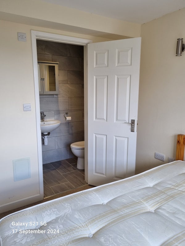 Beautifully fitted out double room with own private en-suite shower room, furnished with a double bed, fitted storage, desk.