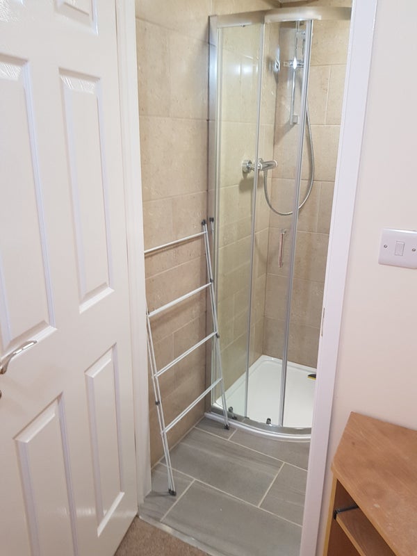 Fully fitted out double room with own private en-suite shower room, furnished with a double bed, fitted storage, desk. All other occupied rooms have ensuite bathrooms and kitchenette in this 4 bedroom house.