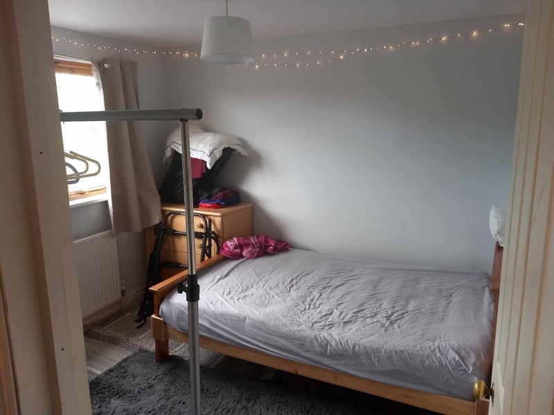 It’s the smallest room in the house, and we’ve had a few issues with mould and damp, which the price of the room reflects, but we anticipate that they will clear up with the warmer weather and the use of dehumidifiers (i. e. not really be an issue by May). Housemates are lovely and very friendly (three early career young professionals).