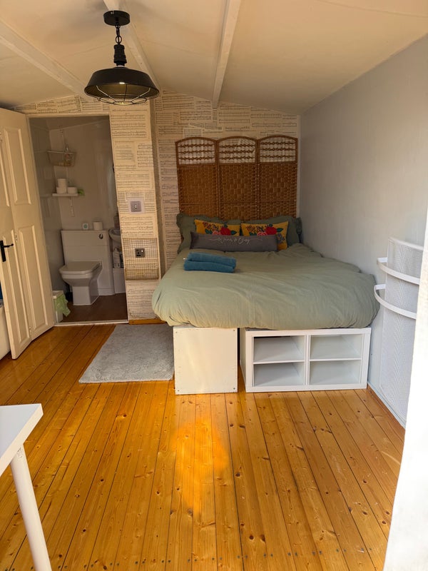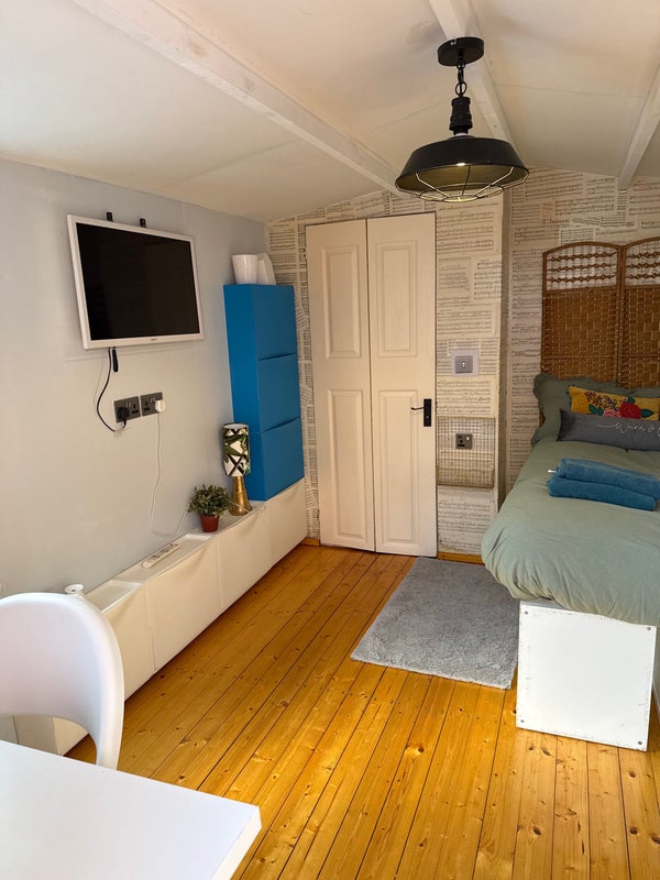 A cosy, self-contained cabin available in a quiet and friendly neighbourhood. The space includes a private bathroom and a fridge, with the option to provide a microwave (no full kitchen).