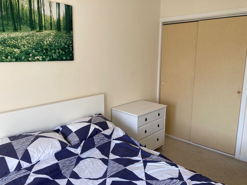 - Double bed, chest of drawers and large built-in wardrobe