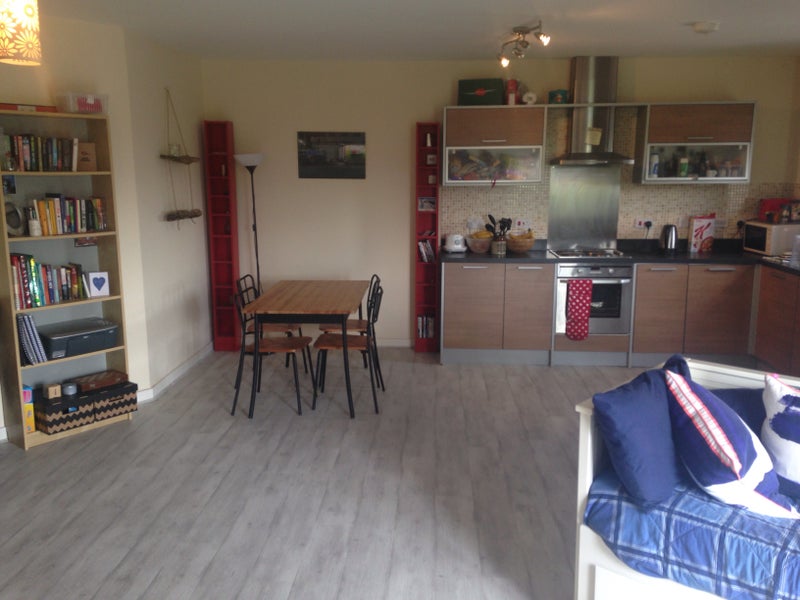 A bright, fully-furnished double room with king size bed available in a modern two-bedroom apartment in the sought-after Orchard Park development. All bills included.