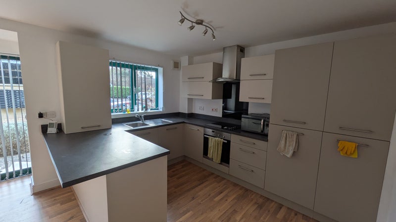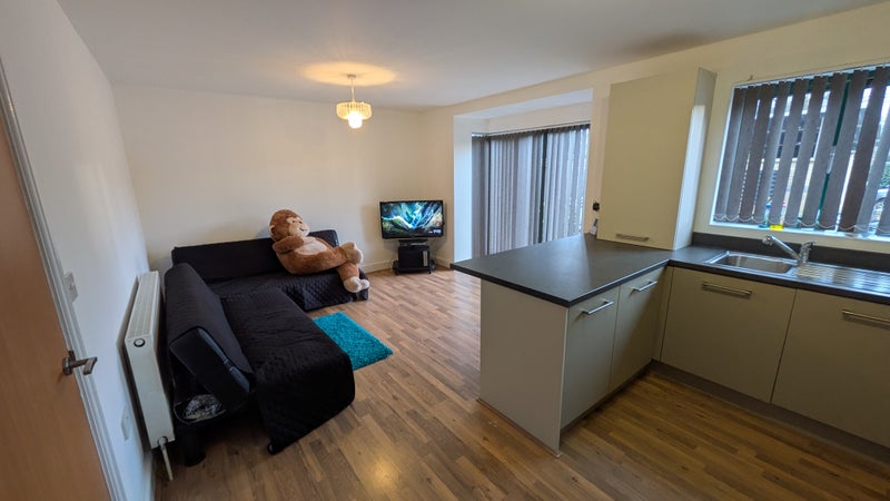 Flat: Large shared Bathroom, Shared open plan Kitchen and Living area; Electric Oven/Hob, Fridge Freezer, plenty of kitchen storage, Dishwasher, Washer Dryer, 1 long sofa, and limited kitchen utensils