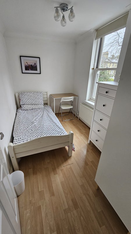 The room available is first floor, has a big window overlooking the church - Its furnished with a bed, mattress ,hanging space, desk and chair & large Set of drawers, There is also a venetian and blackout blind and a heating radiator. It is very quiet and very private considering its right in the centre of Cambridge.