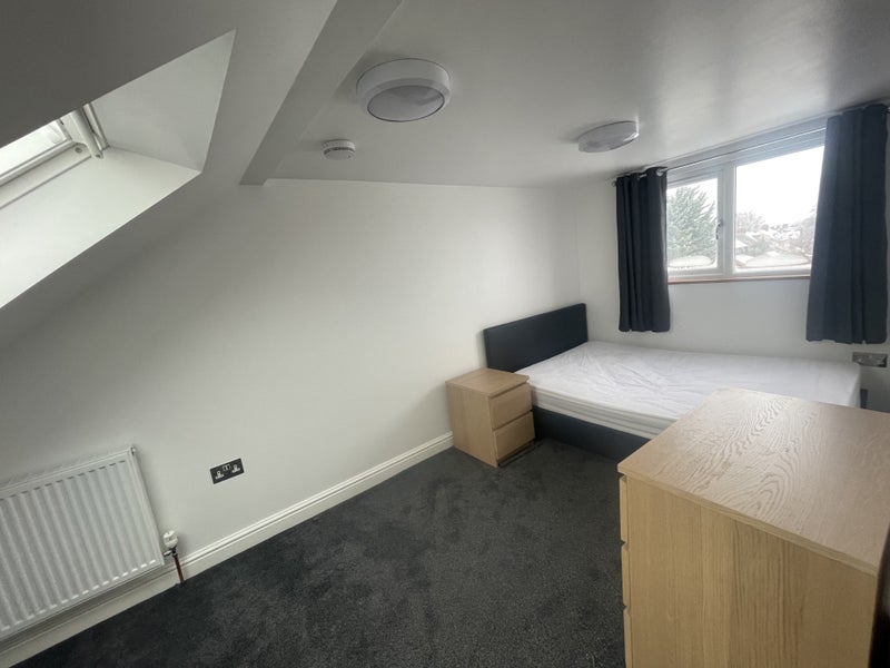 Rent is £850 pcm inclusive of fixed bills and high speed WiFi internet. The room is fully furnished with a leather style double bedstead that has proper sprung slats and a high quality mattress. It has a double wardrobe hangers, a chest of drawers, bed side units and a large desk and chair.