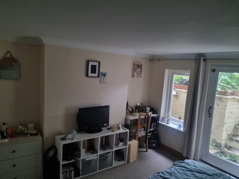 Double basement bedroom (includes double bed, bedside table and wardrobe) with private bathroom. Fully equipped kitchen, utility (washing machine + dryer), garden (great for bike storage) and homey living room. On street parking is available.