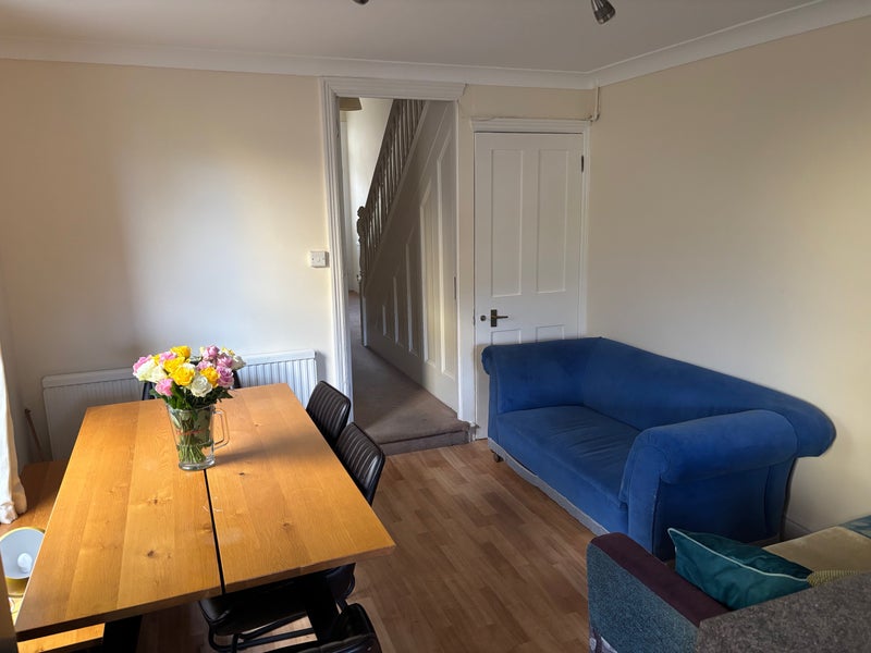 The house has an open-plan kitchen/ dining room, living room, bathroom with bath and shower, 2 toilets. It has a back garden with apple trees. We also have a spooky cellar :) There is very good broadband and secure bike storage.