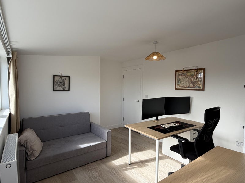 Two spacious, bright double rooms available in a newly built 2–3 bedroom end-terrace house (two bedrooms plus a study). I am renting out the two bedrooms and keeping the study for my own use. Furnished to a high standard. The property was completed in August 2023. The rooms are south-facing with ample sunlight. I am a live-in landlord and will stay/sleep in the study when present, but I will be in London frequently for my PhD (around 3–7 days per week). The pair of rooms is ideal for two friends or a couple looking for a comfortable, modern living space. Postgraduate or mature students preferred. Respectful of the house. No smoking or vaping. Rooms available from mid-May.