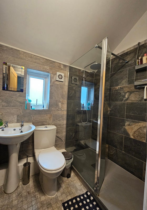 Good quality mattress. There's a large double wardrobe, height adjustable desk, chair and plenty of natural light. Newish bathroom and shower room. Use of washing machine, Newish kitchen (please see video) with dishwasher and use of general household items, saucepans, cutlery, plates and dishes etc. Ideal for international students. Duvet and bed linen available if required. Shared living space with sofa in kitchen/dining room,