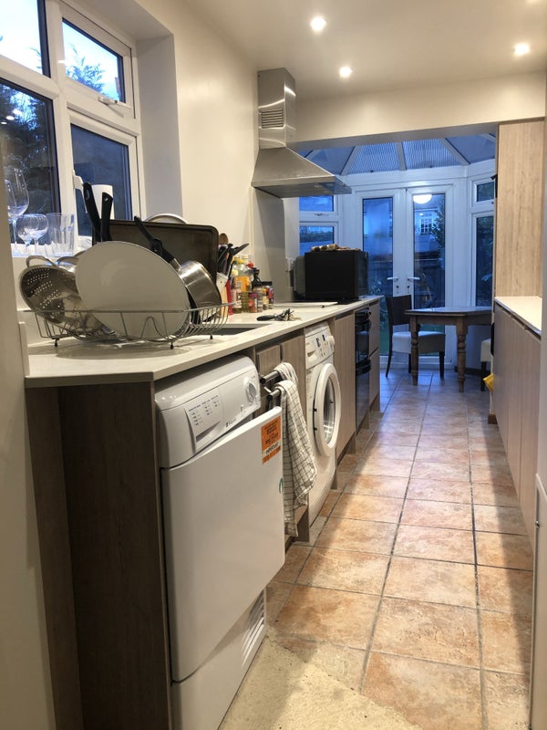 The house includes a NEW redesigned shared kitchen with your own fridge - shared freezer, microwave, washing machine, tumble dryer and electric double oven. + cooking utensils