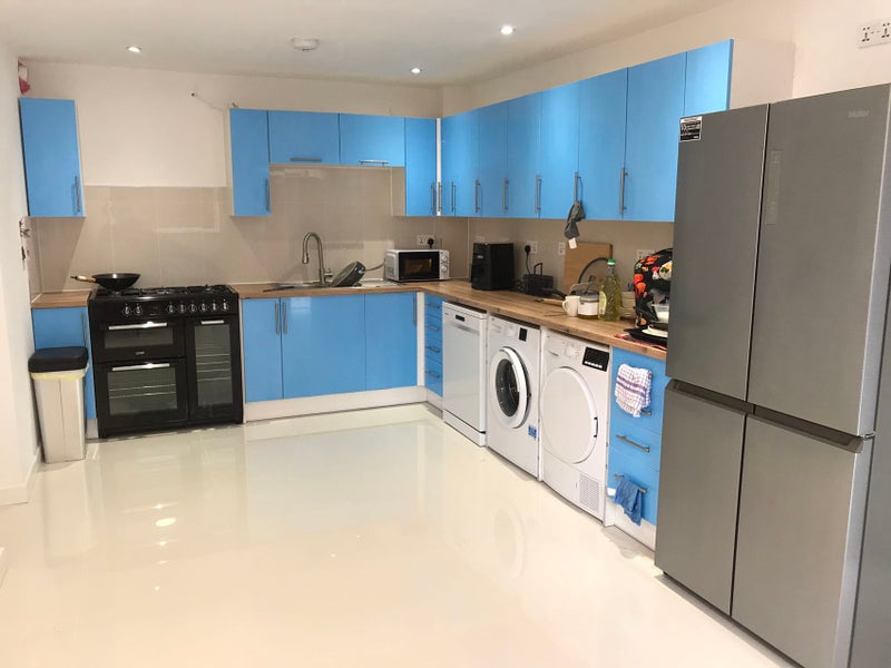 The high standard well equipped kitchen with all brand new Gas cooker (plus 2 big Ovens and 1 BBQ space), air fryer, bread baker, Microwave, Kettle. New American Fridge Freezer, new dishwasher, new Washer machine, powerfu; Dryer and brand new powerful boiler with huge hot water tank for 7*24 Hours supply...