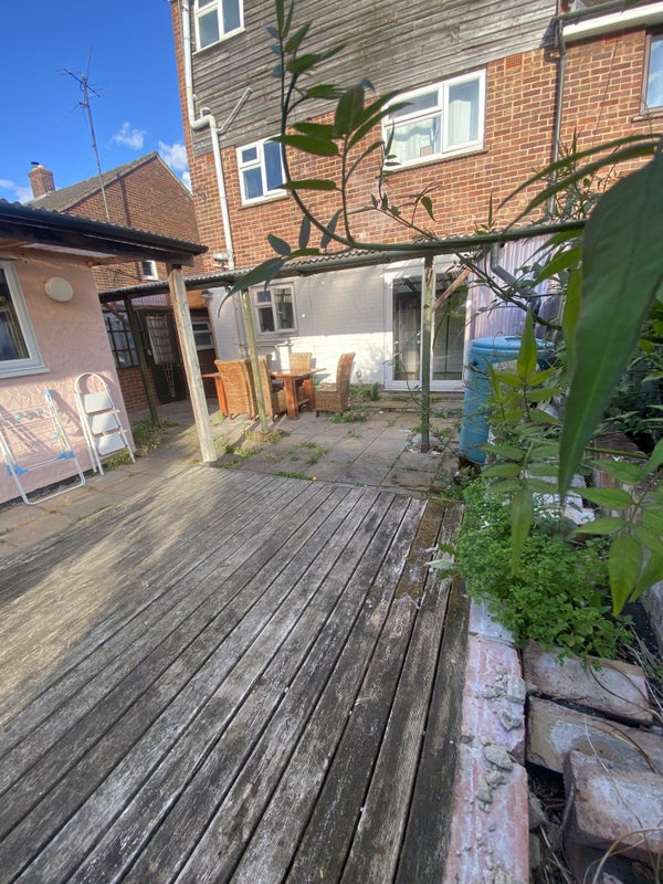 There is a large kitchen which has french doors to an outside eating area and sunny garden. Parking is available for 2 cars on the driveway and there is more space available on the road if needed.