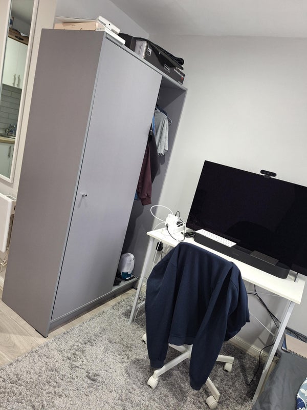 Room comes with single ottoman bed, wardrobe, desk and chair.