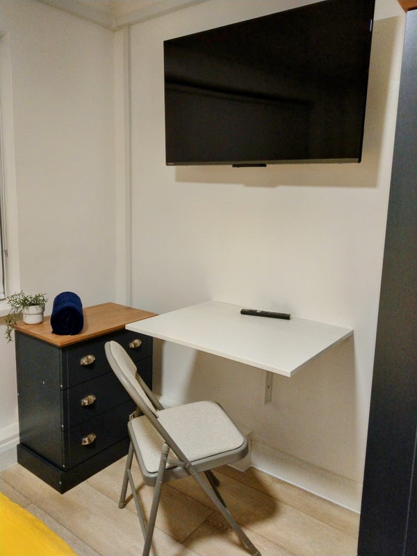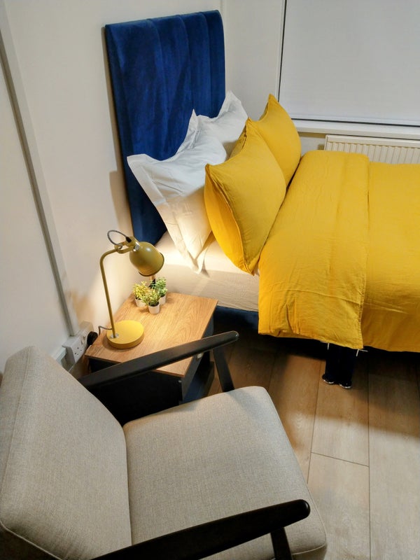 Spacious and comfortable furnished rooms with wardrobe, chest of draws, bed side table, lamp, arm chair, wall mounted large screen TV, study/dining table & chair, ample under bed storage, large cushioned headboard, comfortable 28cm depth mattress, pillows, duvet, bed linens. All included!