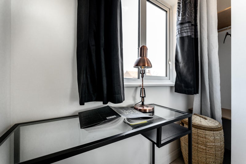 The room is furnished with double bed, desk, desk chair, chest of draws and a comfy chair. The en-suite has shower cubical, basin with vanity unit, mirror, we and heated towel rail.
