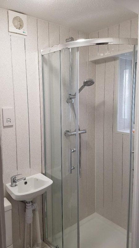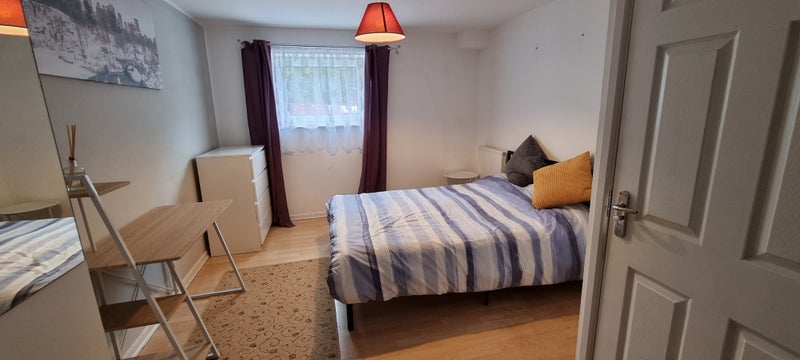 The large studio room on Ground floor is fully furnished with bed, wardrobe, chest of drawers and bedside table. TV aerial point in all rooms should you wish to have your own TV. It has a remote en-suite for exclusive use.