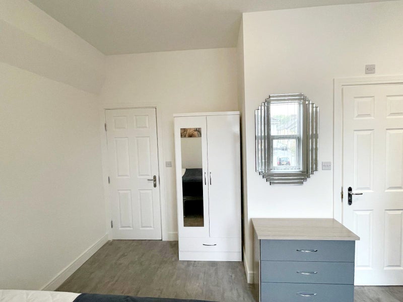 En-suite Studio: Fully equipped with a double bed & mattress, wardrobe, chest of drawers, desk, bedside table, lamp and wall mirror. Also includes USB charging points.