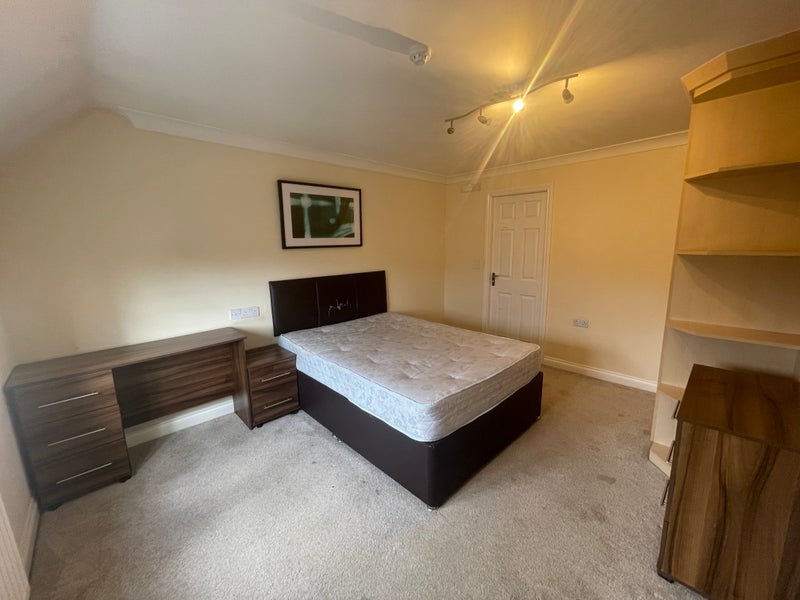 Fully furnished with a double bed and mattress, wardrobe, chest of drawers, and personal desk - ideal for work or study
