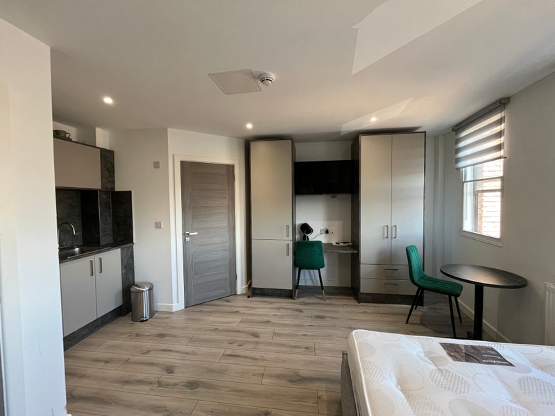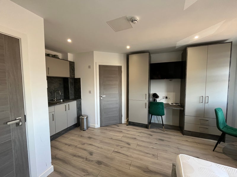 This stunning studio is fully furnished with bespoke, modern furniture. The property has intercom so you can accept deliveries without leaving your space, a communal lounge and kitchen to make new friends and lots of storage for all of your clothes and belongings. 🎆🥳