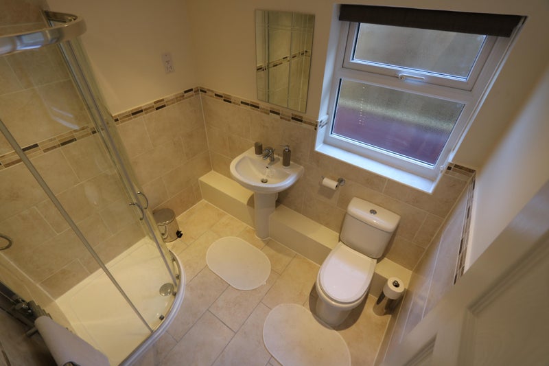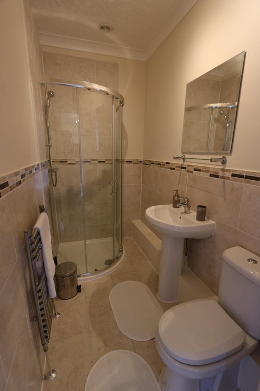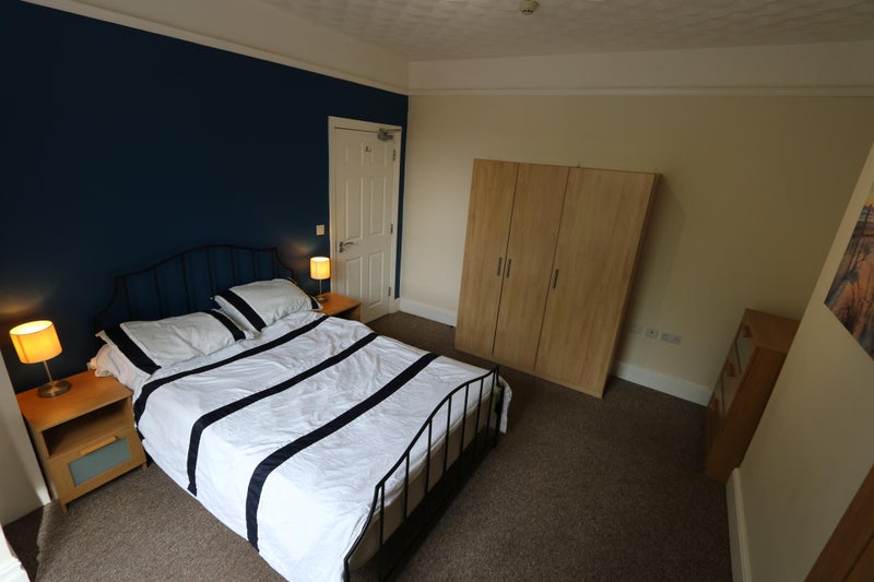 The room itself is on the ground floor, a good size, freshly repainted and fully furnished with a double bed, wardrobe and desk.