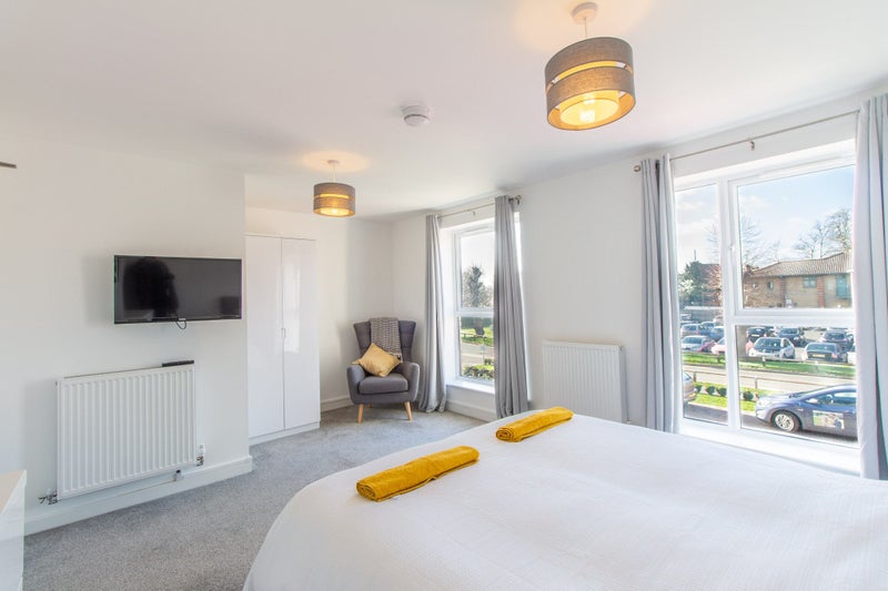 All bedrooms are fully furnished with a double bed, mattress, wardrobe, chest of drawers, bedside table, and a Smart TV.