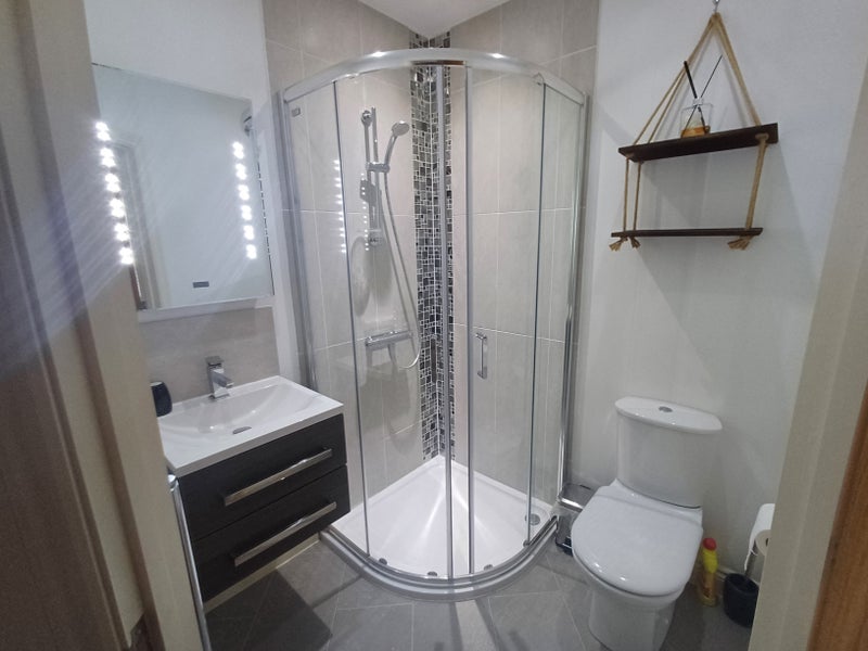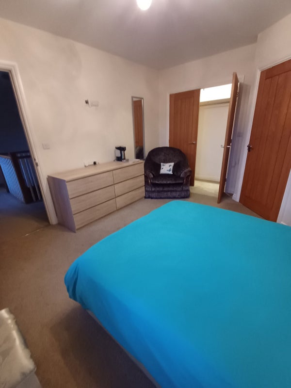 We have a lovely double room with its own ansuit bathroom. It has a large built in wardrobe, chest of draws bedside tables and lamps, located in a quite village location.