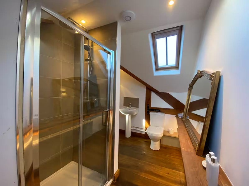 There are two comfortable king bedrooms, ideal for couples or colleagues sharing. A full bathroom with walk-in shower and a quiet reading corner on the landing provide extra comfort for longer stays.