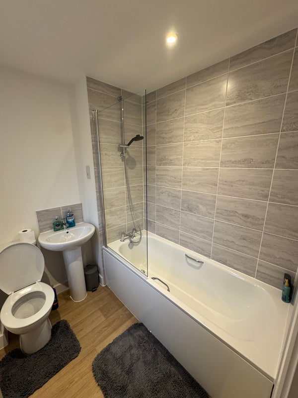 Double room in brand new house available to rent, comes with a large family bathroom which hasn’t been used due to having an en-suite. Bed and mattress is brand new. Very clean and tidy household. Less than 5 minute walk to the shops and less than a mile to the train station.
