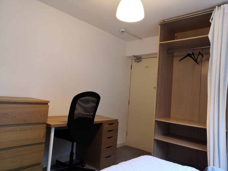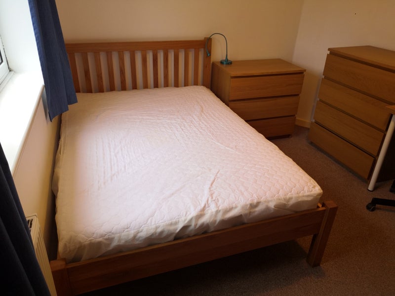 Room 4 (£450pcm) is a double (11 m2) and has a view of the courtyard garden. It has a double bed with quality mattress, desk & chair, drawers x 2, tall wardrobe and a sink. It is internally insulated so nice and warm.