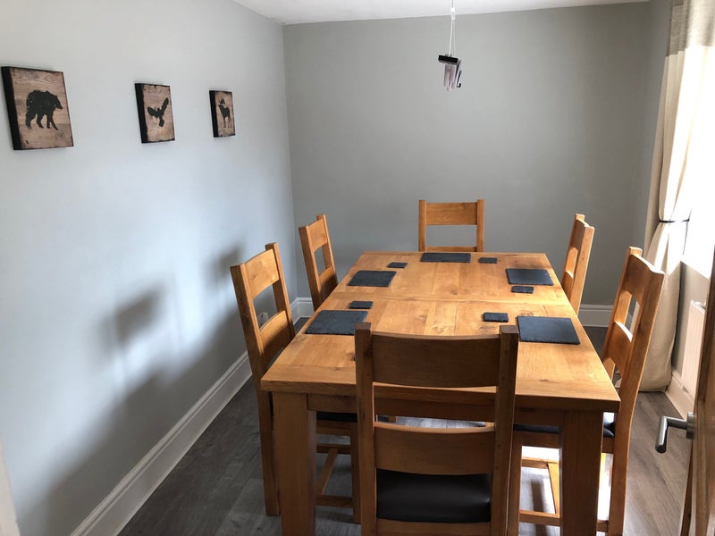 -Huge Dining Room (pictured) with solid oak table and chairs. Perfect for social gatherings.