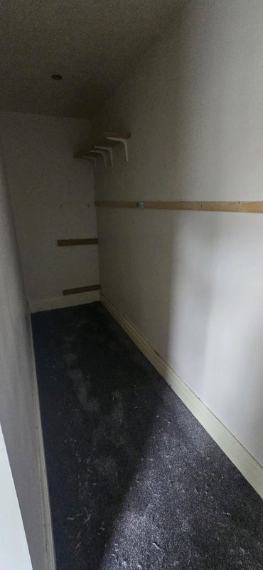 The room has a large walk in wardrobe.