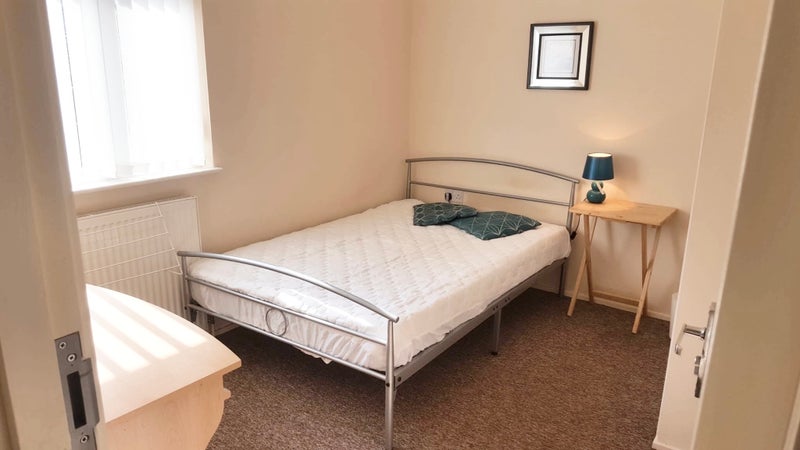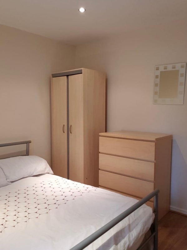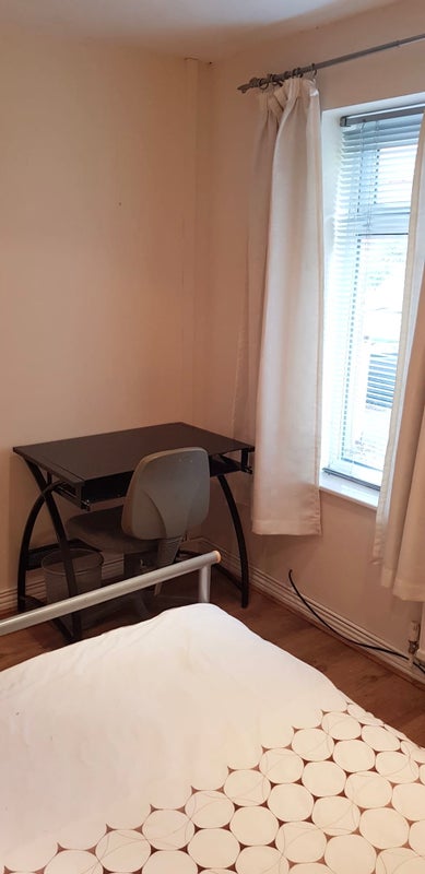This fabulous professional house share has a beautiful spacious double room just available. Bright and airy room with TWO double wardrobes, modern furniture including DESK & CHAIR and DOUBLE bed with comfy mattress etc. Super FAST 300mbs WIFI etc It is immaculate and has a large chest of drawers, bedside cabinet, mirror, TV wall aerial, door lock etc.
