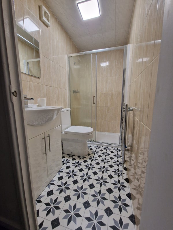 The room is spacious and well furnished. Furnishing includes; Bed & mattress with storage, Free standing wardrobe, Chest of Drawer, Bedside tables, Office desk and chair. The room is a very good size. Main Bathroom is Shared but will mainly be used by the lodger.