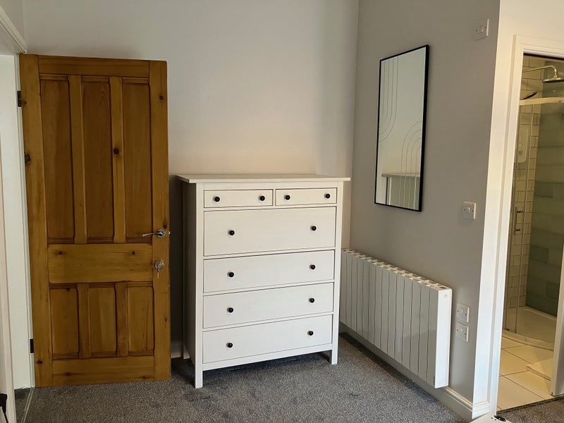 Currently part furnished (as tenants often ask me if they can bring their own bed) with built in double wardrobe, large chest of drawers, wall mirror & chair.