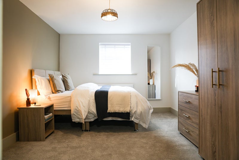 Your bedroom includes a comfy double bed with mattress and protector, wardrobe, chest of drawers, bedside table, lamp, and mirror. Each room also has a TV aerial point if you'd like to bring your own set.