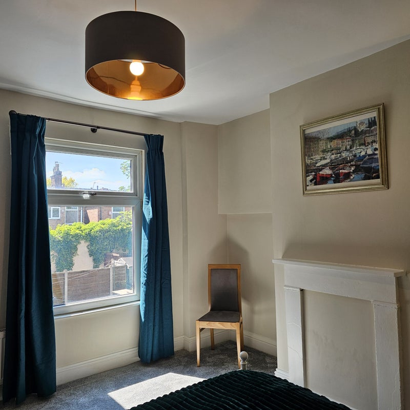 This is a large house with very large rooms. The advert is for 2 rooms for room share between two people and two private rooms for individuals. Each tenant will have a double bed to themselves, study table and clothes storage. There will be a partition curtain between the two portions of the room which is shared between two people.
