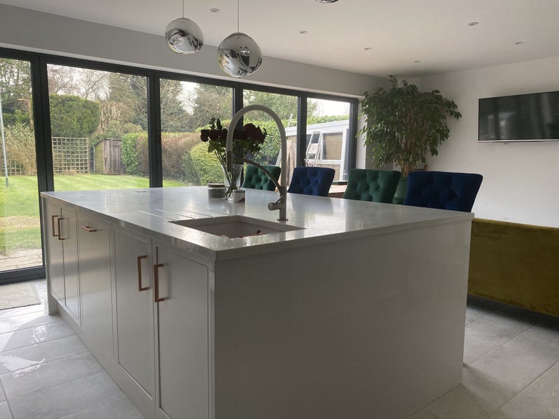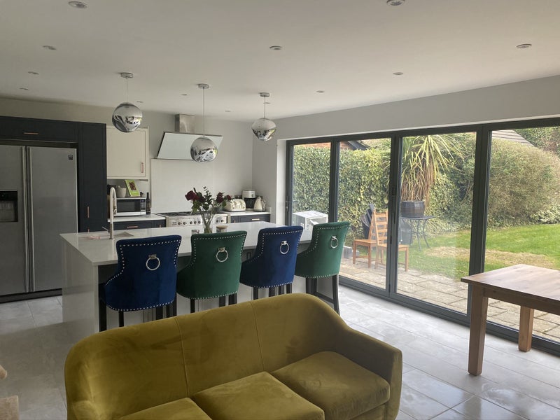 The house is all quite modern with large open plan kitchen, dining, living space, opening out onto a good sized garden with large bifolds doors. There is also a small separate lounge/ snug.