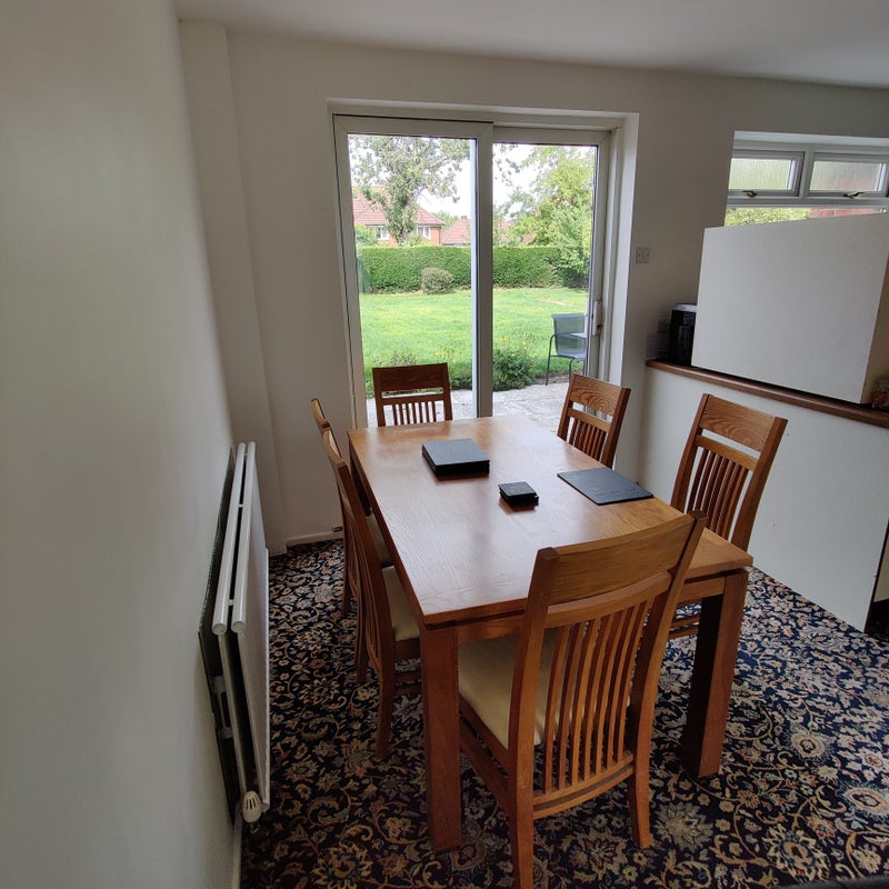 The room is a large double room with a king bed and solid oak furniture, including a triple wardrobe and a large chest of drawers. All upstairs of the house has had a full renovation this year, including new wiring, plastering, furniture, decorating and wool carpets. If you require a bigger room than advertised, e. g. for a computer desk or a make-up desk, the front room is bigger and has more storage. Can be discussed on viewing.