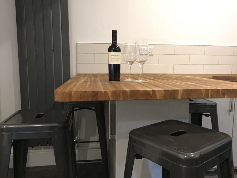 - Well equipped modern kitchen with Oak worktops / fan assisted oven / microwave / kettle / 4 slice toaster / American fridge-freezer / breakfast bar